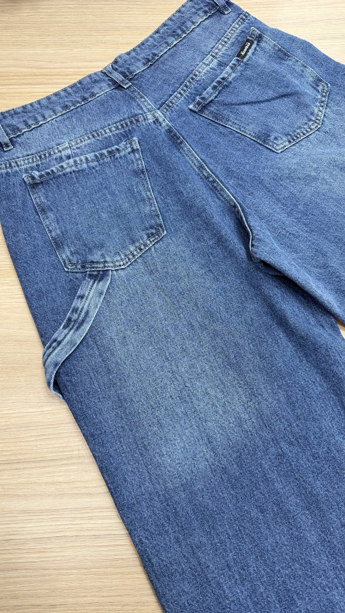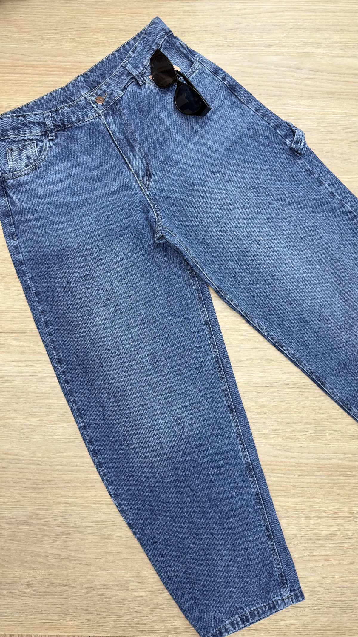 Confeccionado en denim suave de excelente calidad, presenta un lavado azul claro con efecto desgastado que le aporta un aire vintage muy buscado. Su diseño de pierna amplia se afina levemente hacia el ruedo, dando ese fit baggy clásico que estiliza sin perder comodidad.