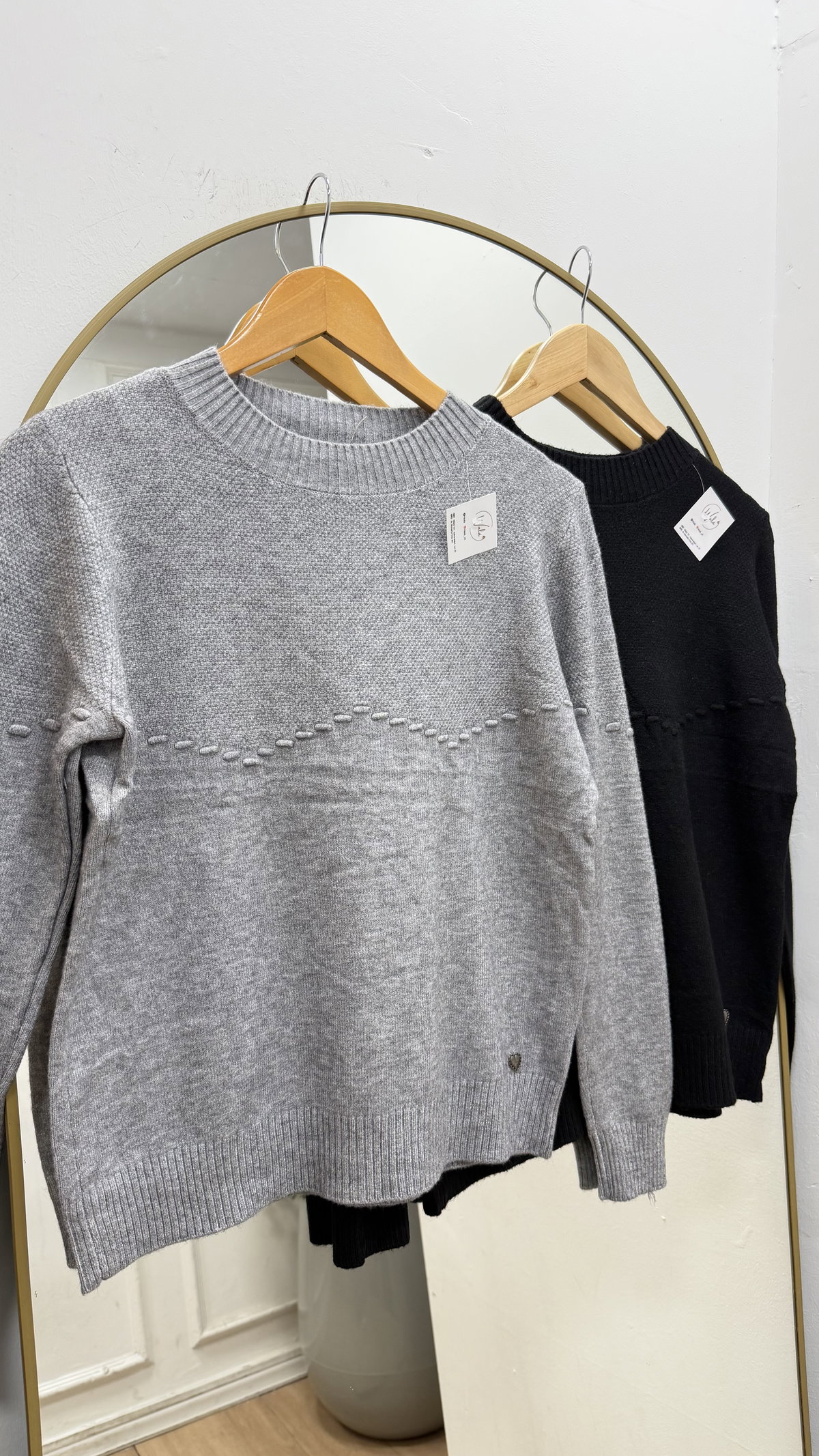 Este sweater de bremer se destaca por su textura suave y liviana, ideal para usar todos los días sin perder estilo. Su diseño minimalista suma un detalle tejido horizontal en el frente que le aporta un toque sutil y moderno.